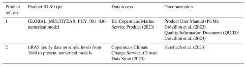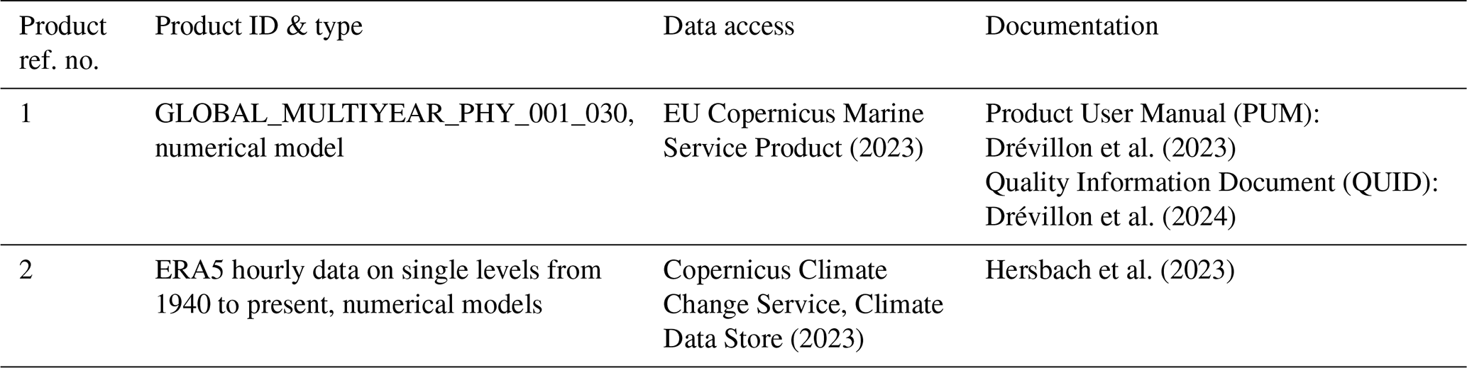 Drévillon, M., Fernandez, E., and Lellouche, J. M.: EU Copernicus Marine Service Product User Manual for the Global Ocean Physics Reanalysis, GLOBAL_MULTIYEAR_PHY_001_030, issue 1.6, Mercator Ocean International, https://documentation.marine.copernicus.eu/PUM/CMEMS-GLO-PUM-001-030.pdf (last access: 14 May 2025), 2024.
